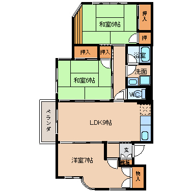 - LDK9帖、和室6帖、和室6帖、洋室7帖
