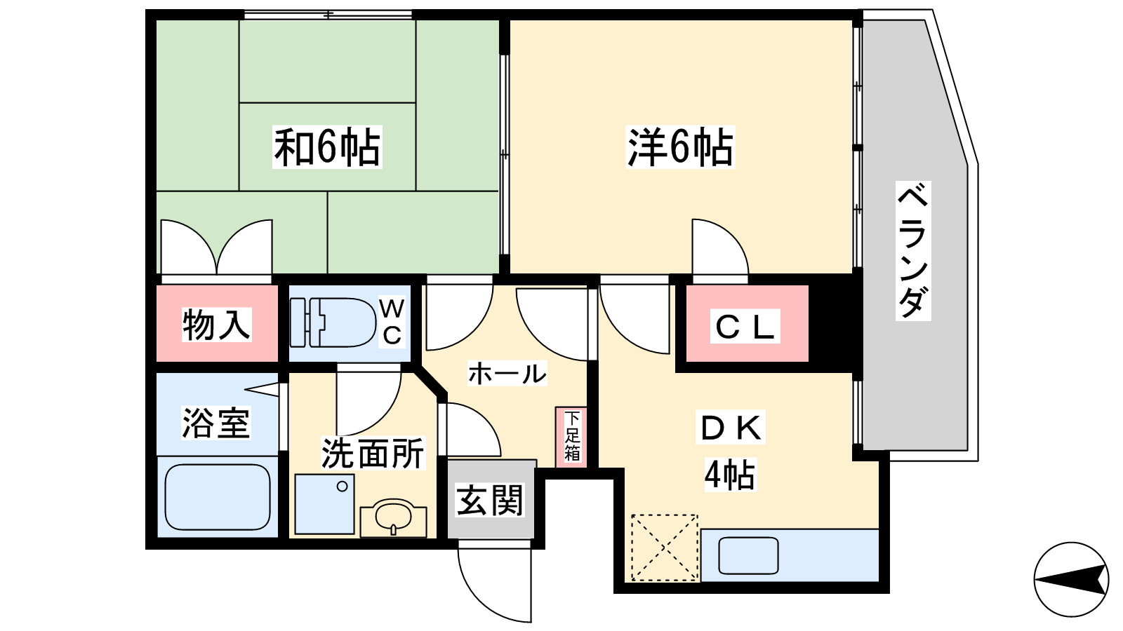 - 洋室6帖、和室6帖、DK4帖