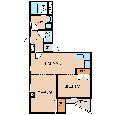 - LDK9.5帖、洋室6.5帖、洋室5.1帖