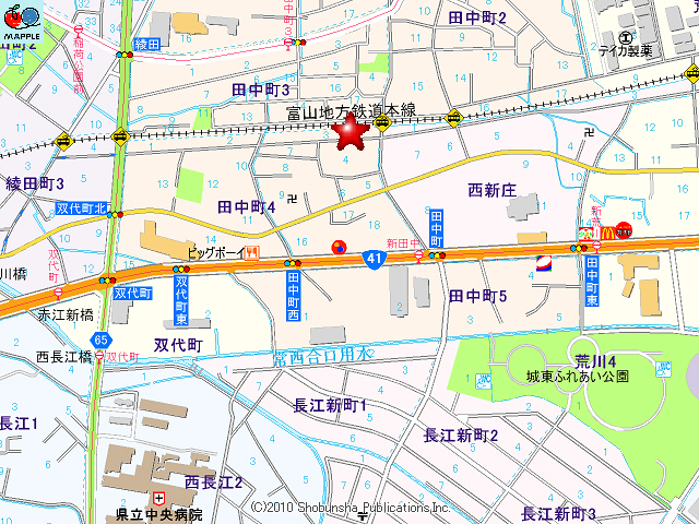 - 富山地鉄本線 稲荷町駅 バス3分 新田中バス停 徒歩13分