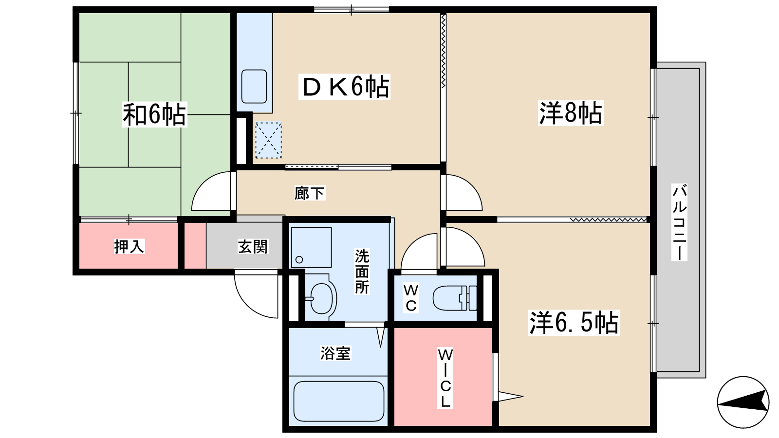 - DK6帖、洋室7帖、洋室8帖、和室6帖