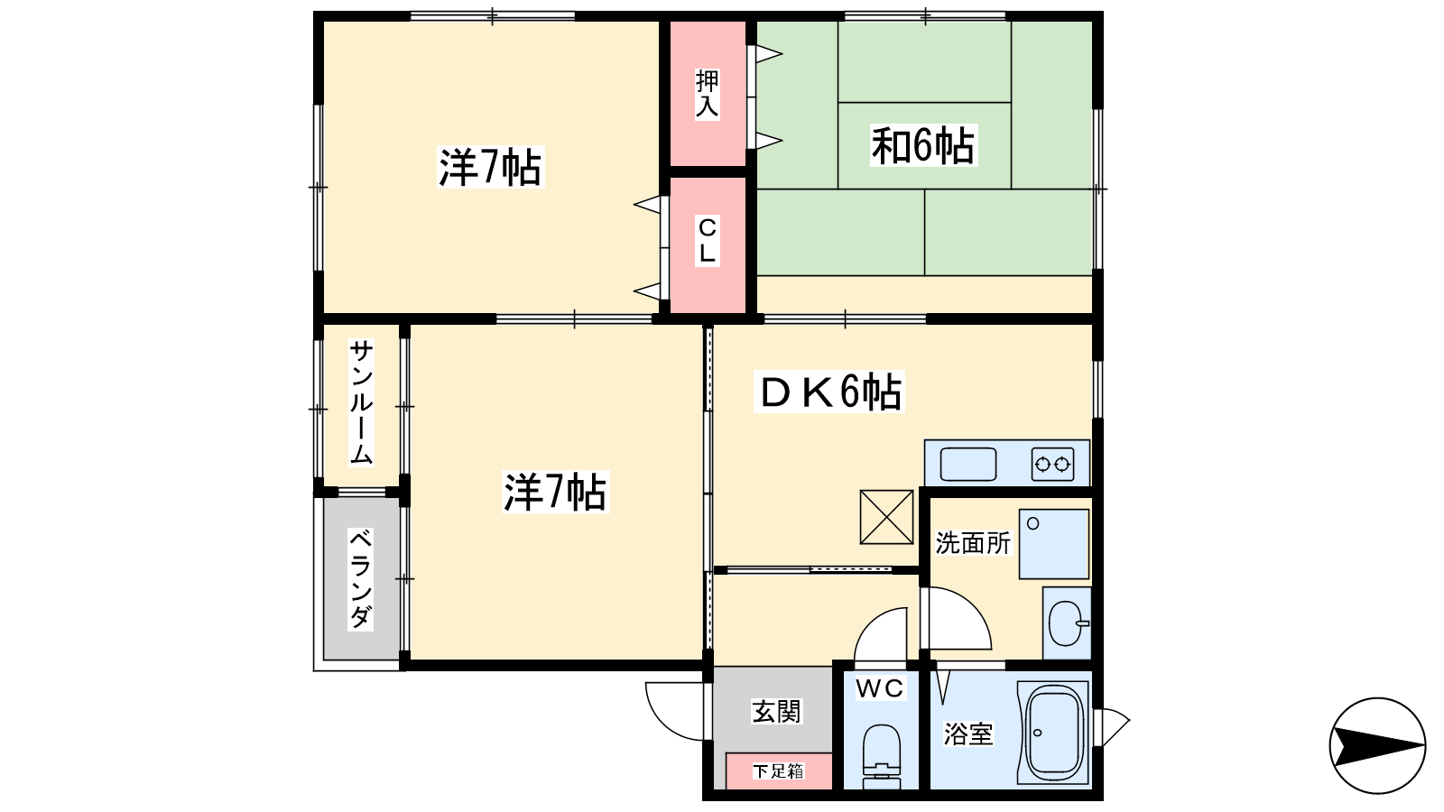 - 洋室7帖、和室7帖、洋室7帖、DK7帖