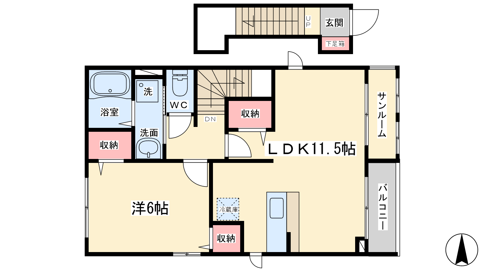 - 洋室6帖、LDK11.5帖