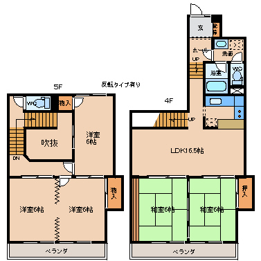 - LDK16.5帖、和室6帖、和室6帖、洋室6帖、洋室6帖、和室6帖