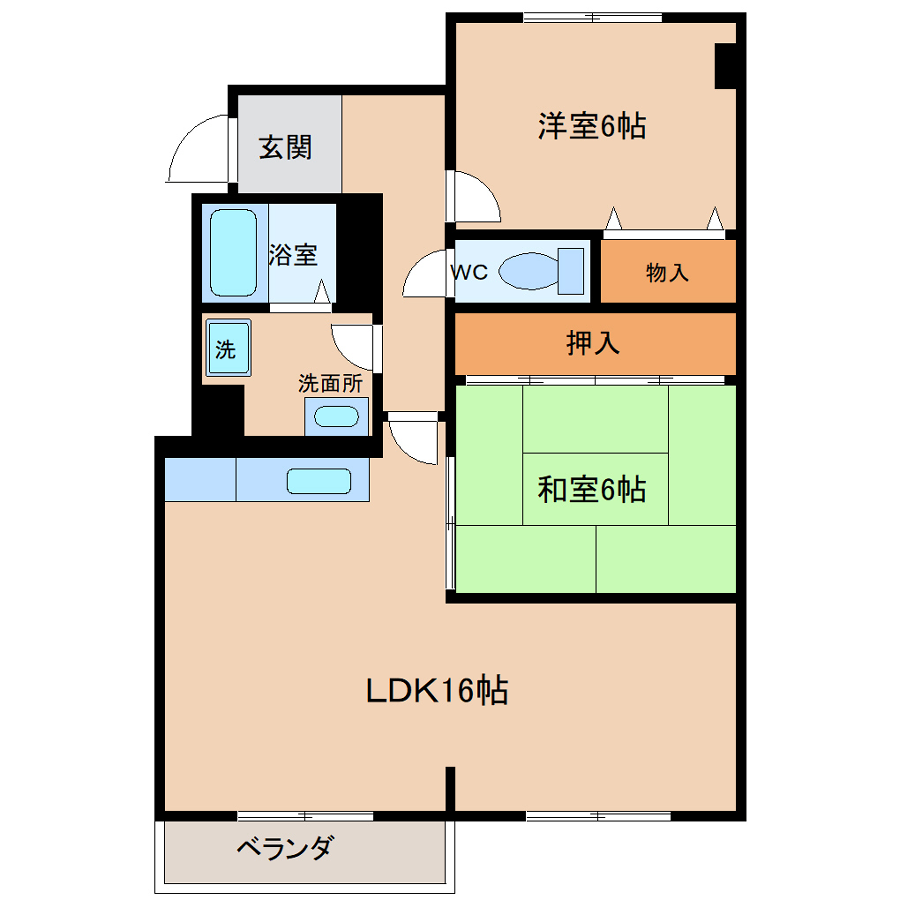 - 洋室6帖、和室6帖、LDK16帖