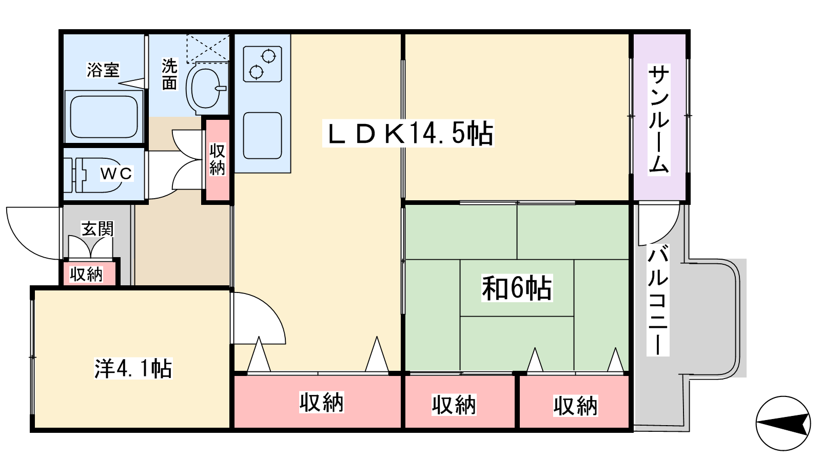 - LDK14.5帖、和室6帖、洋室4.1帖