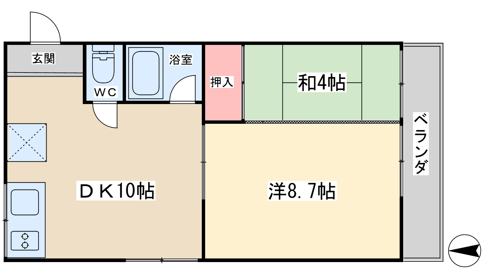 - LDK10帖、洋室8.7帖、和室4帖