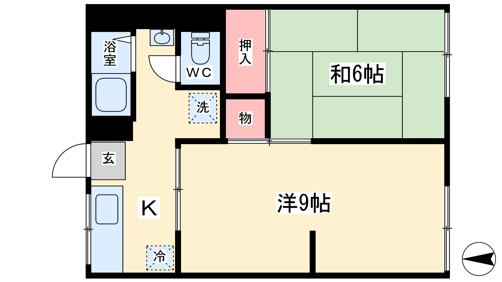 - 和室6帖、洋室9帖、K2帖