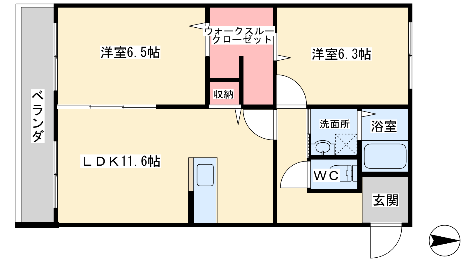 - LDK11.6帖、洋室6.5帖、洋室6.3帖