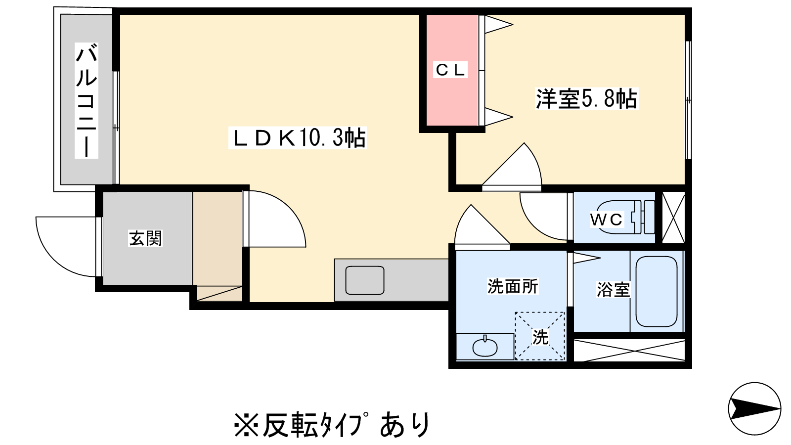 - 洋室5.8帖、LDK10.3帖