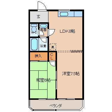 - 和室6帖、洋室7.5帖、LDK8帖