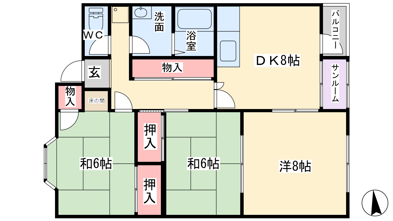 - 洋室6帖、洋室8帖、和室6帖、DK8帖