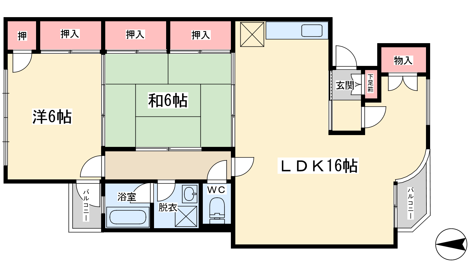 - 和室6帖、洋室6帖、LDK16帖