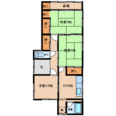- DK5帖、洋室4.5帖、和室6帖、和室6帖