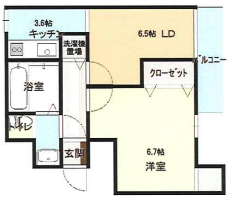 - K3.6帖、LD6.5帖、洋室6.7帖