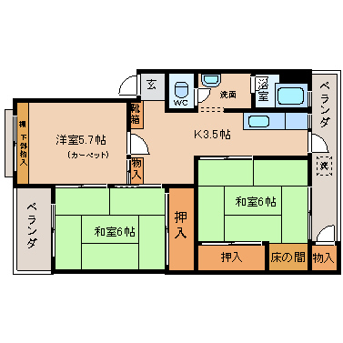 - 洋室5.7帖、和室6帖、和室6帖、K3.5帖