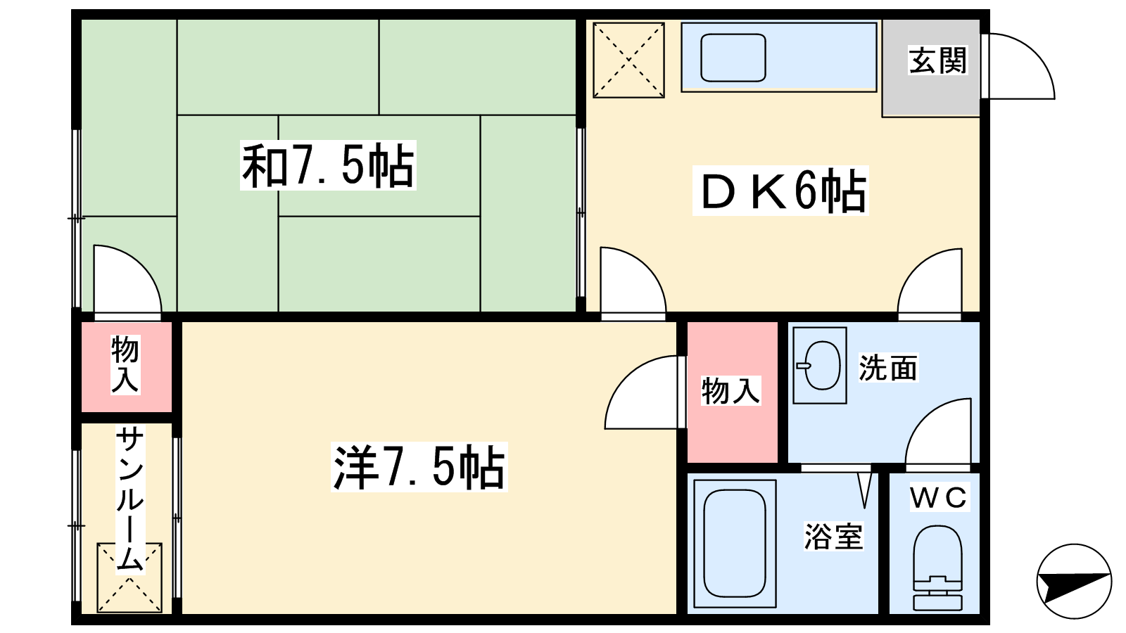 - DK6帖、洋室7.5帖、和室7.5帖