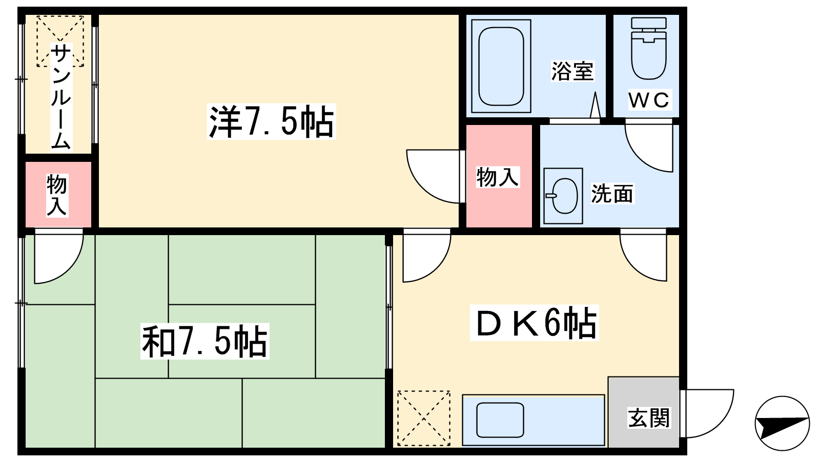 - DK6帖、洋室7.5帖、和室7.5帖