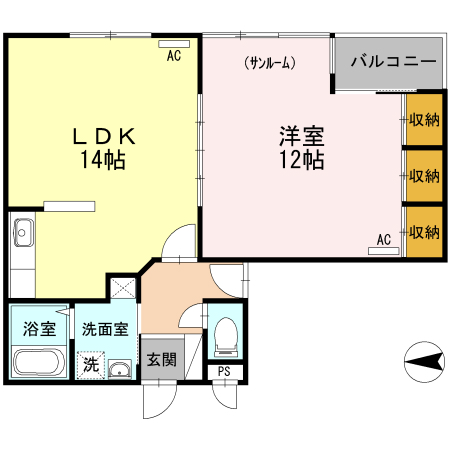 - LDK14帖、洋室12帖