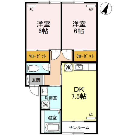- DK7.5帖、洋室6帖、洋室6帖