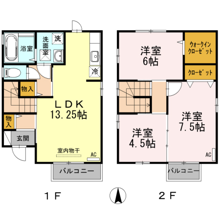 - LDK13.25帖、洋室7.5帖、洋室6帖、洋室4.5帖