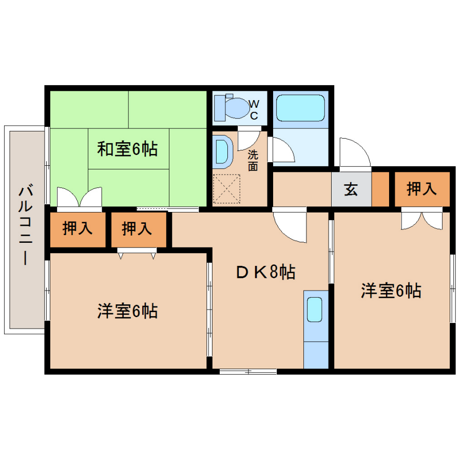 - 和室6帖、洋室6帖、洋室6帖、DK8帖