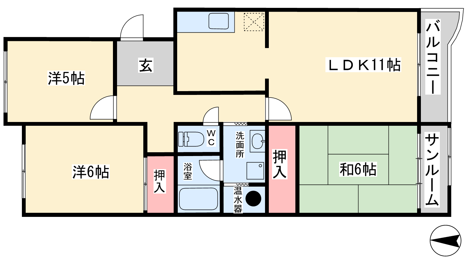 - LDK11帖、洋室6帖、洋室4帖、和室6帖