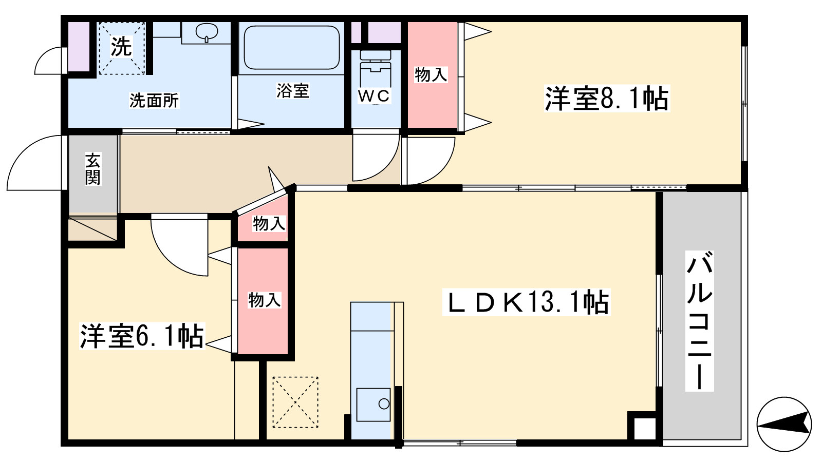 - LDK13.1帖、洋室6.1帖、洋室8.1帖