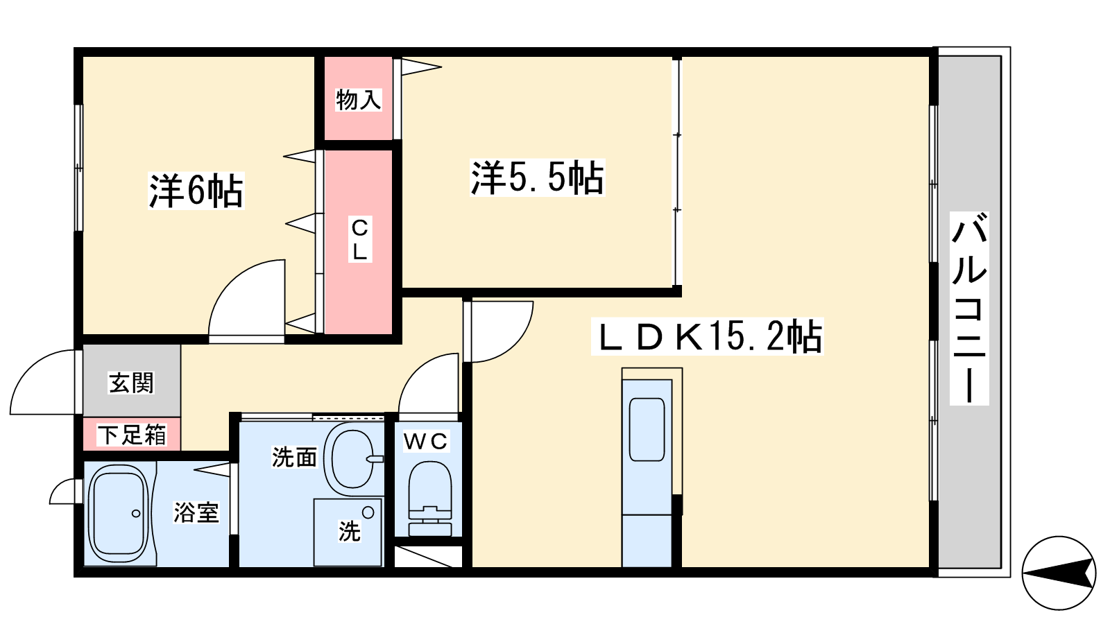 - 洋室5.5帖、洋室6帖、LDK15.2帖
