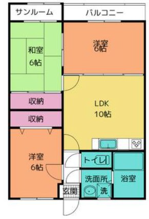 - LDK10帖、洋室6帖、洋室6帖、和室6帖