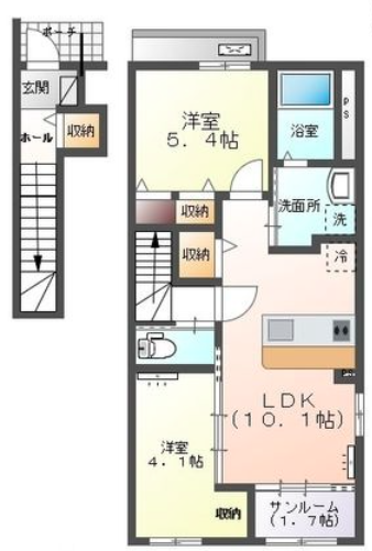 - LDK10.1帖、洋室5.4帖、洋室4.1帖