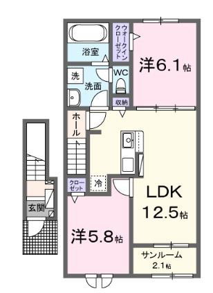 - LDK12.5帖、洋室6.1帖、洋室5.8帖