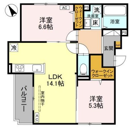 - LDK14.1帖、洋室6.6帖、洋室5.3帖